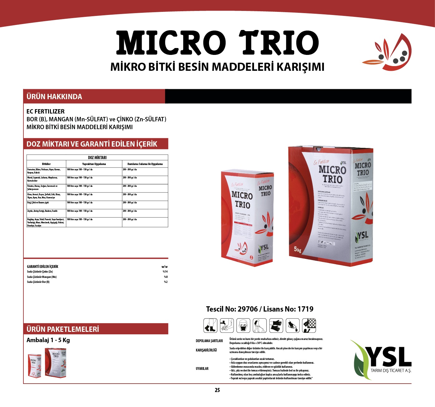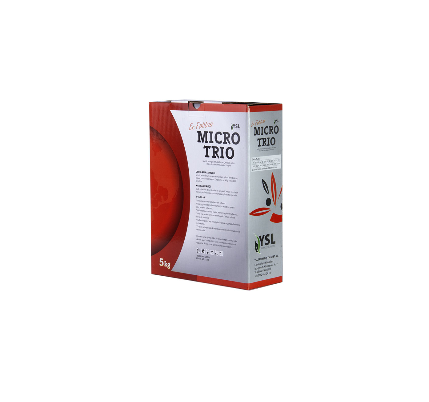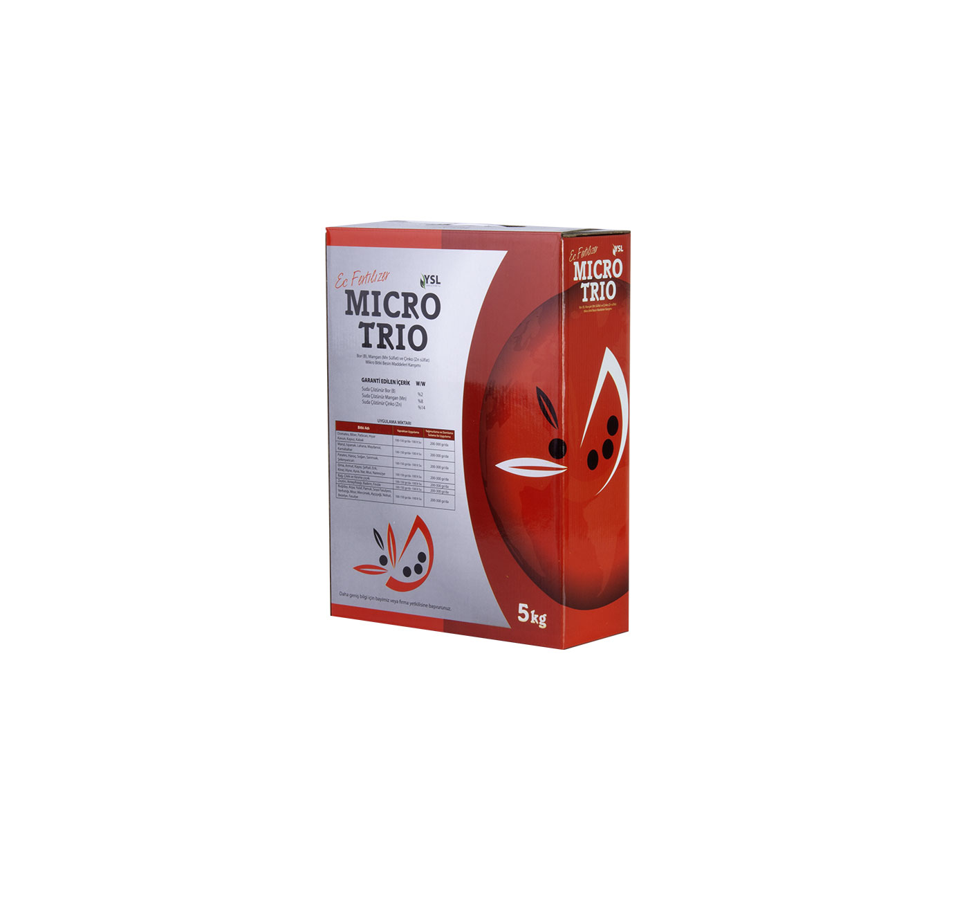 - Bor (B), Mangan (Mn–Sülfat) ve Çinko (Zn–Sülfat) mikro bitki besin maddeleri karışımı